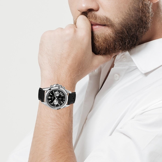 Мужественный черный циферблат обладает отличной читаемостью в любых условиях. Четкие метки и лаконичный дизайн создают ощущение порядка и функциональности. Стрелки и метки покрыты люминесцентным составом, что обеспечивает прекрасную видимость даже в темноте.