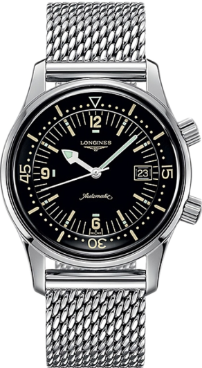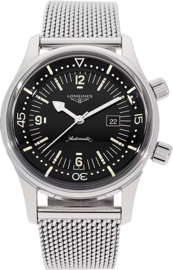 Швейцарские мужские механические часы Longines Legend Diver Watch L3.674.4.50.6 представлены в дайверском дизайне.